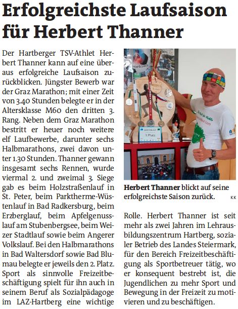Herbert Thanner schloss seine erfolgreiche Saison beim Graz Marathon ab und berichte wie folgt: