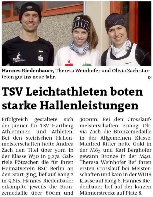 Theresa Weinhofer lief heute ihren ersten Crosslauf bei Meisterschaften und kam in der WU18 Klasse auf Rang 6. Hannes Riedenbauer lief auf der kurzen Männerstrecke auf Rang 8.