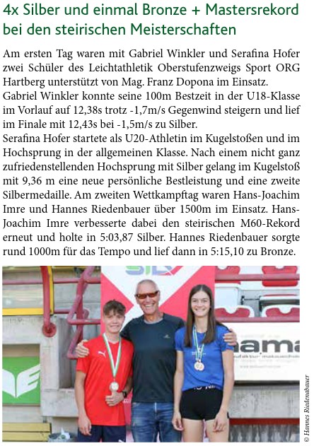 - Steirische U14-AK Meisterschaften in Kapfenberg am 02./03.07.2022 - Live-Ergebnisse