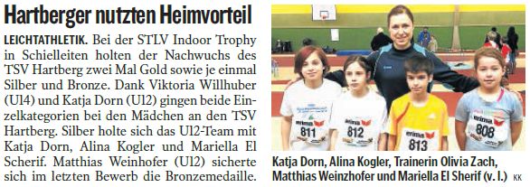 Bei der gestrigen STLV Indoor Trophy in Schielleiten gab es tolle Erfolge (2x Gold, 1x Silber und 1x Bronze) für den TSV Sparkasse Hartberg.