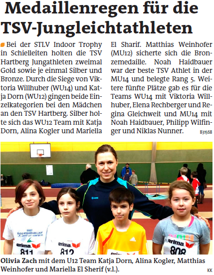Bei der gestrigen STLV Indoor Trophy in Schielleiten gab es tolle Erfolge (2x Gold, 1x Silber und 1x Bronze) für den TSV Sparkasse Hartberg.