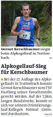 Gernot Kerschbaumer startete am Wochenende für den TSV und holte sich beim Alpkogellauf über 7400m den Gesamtsieg in 26:42,5.