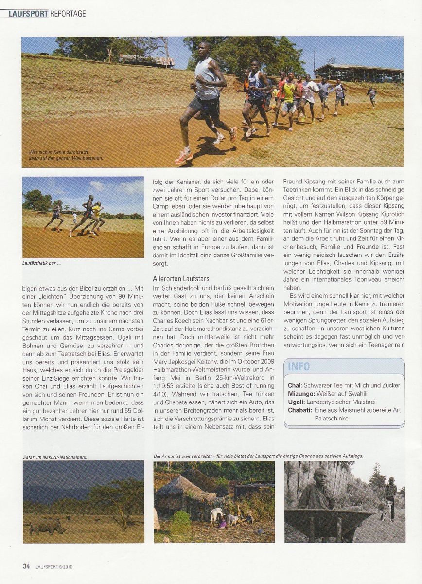 Im aktuellen Laufsport Marathon wurde ein 4-seitiger Bericht unseres Trainingslagers in Kenia (Iten) vom vergangenen Jahr veröffentlicht. Florian Prüller hat unsere Erfahrungen nochmal detailiert für das Magazin zusammengefasst. Wem die Bilder zuwenig sind, der kann hier ein Testabo (2 Ausgaben zum Preis von einer) um 5,50€ bestellen.