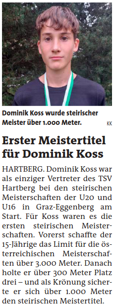 Dominik Koss war als einziger Vertreter des TSV bei den steirischen Meisterschaften der U20/U16 Klassen in Graz-Eggenberg am Start. Für Dominik waren es auch seine ersten steirischen Meisterschaften.