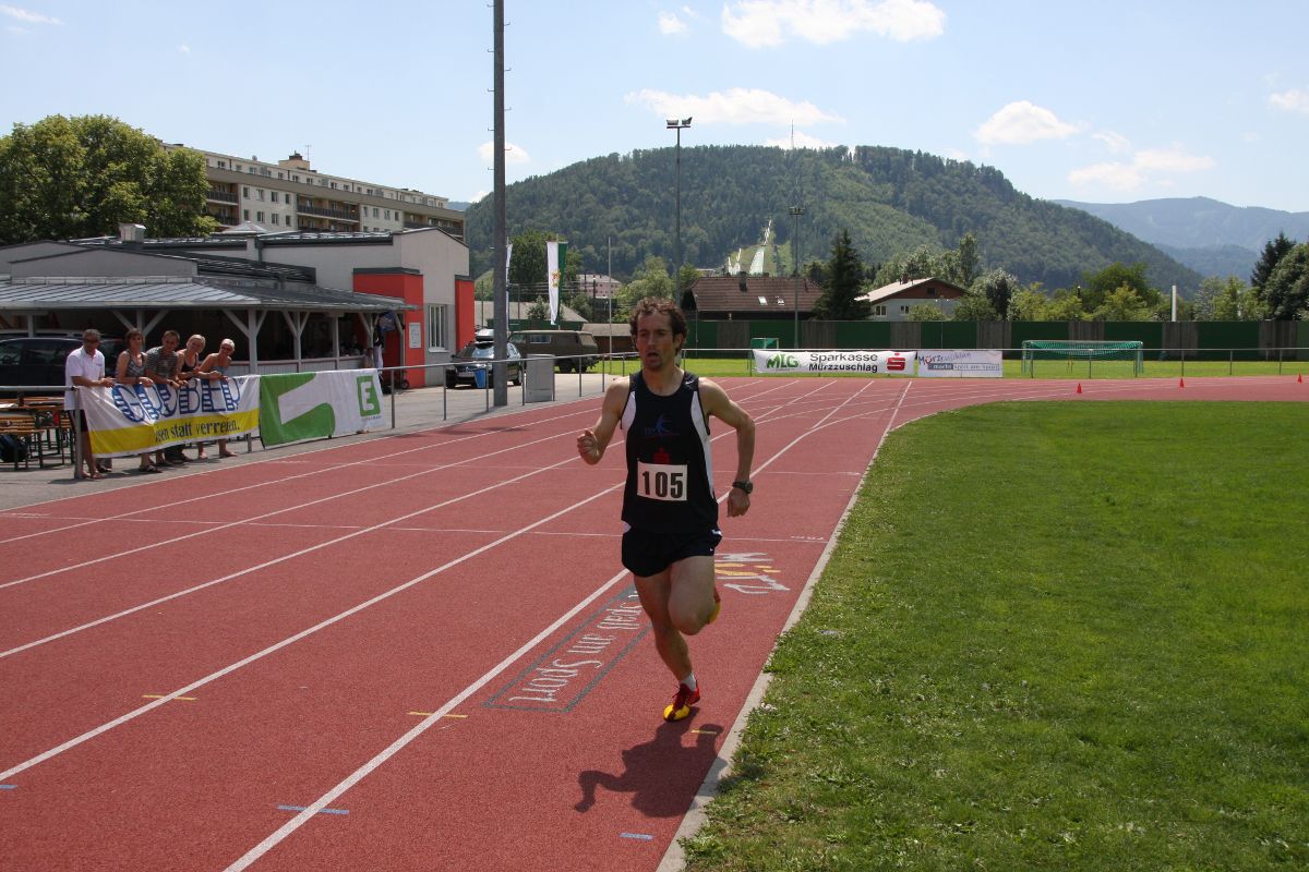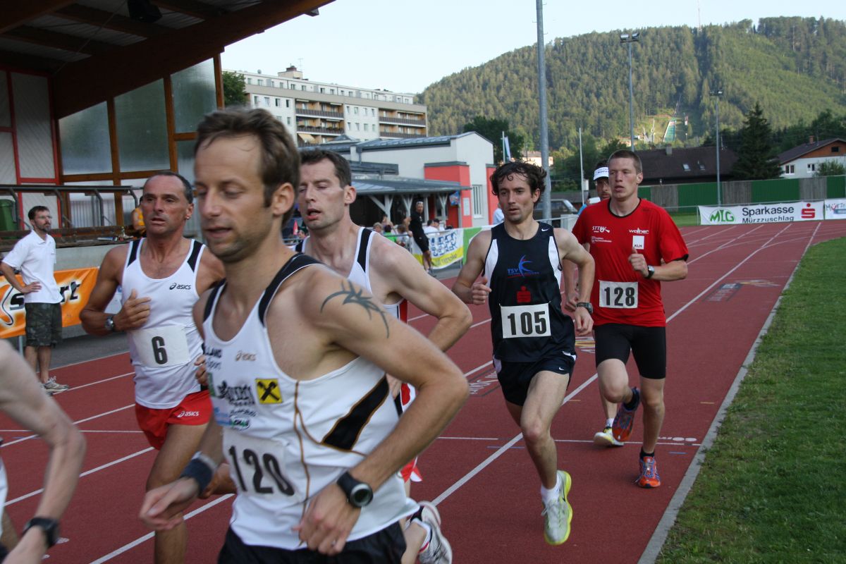 Am ersten Tag der Meisterschaften in Mürzzuschlag stand der 5000m Lauf auf dem Programm. Bei warmen und schwülen Bedingungen war dies für alle Teilnehmer kein Tag für Bestleistungen. Bis ca. 2900m lief eine 7 Mann starke Gruppe um den 3. Platz. Kurz danach konnte sich ein Läufer rasch lösen und es ging lediglich um Platz 4. Ich lief dann in 16:54,54 einen etwas entäuschenden 9. Platz nach Hause.