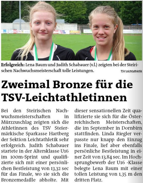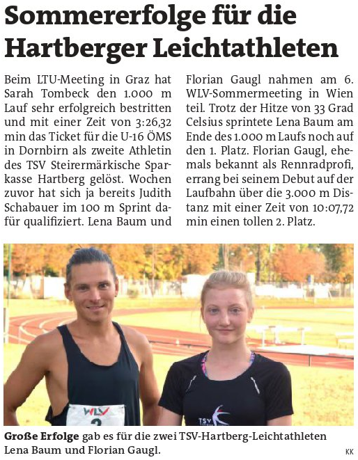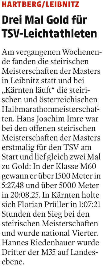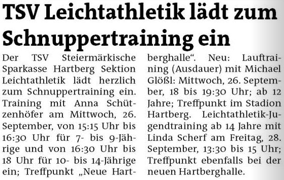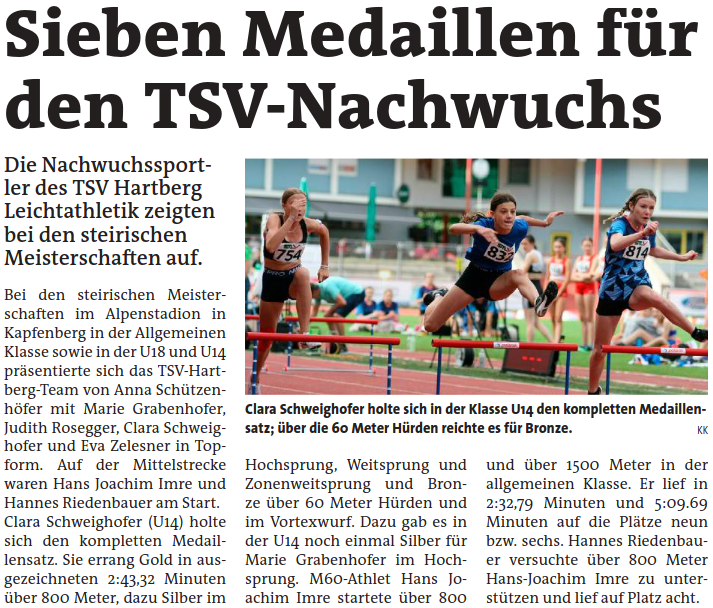 Presseberichte des TSV Hartberg Sektion Leichtathletik